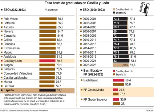 El índice que mide los jóvenes que titulan en Secundaria dentro de su grupo de edad cae seis puntos desde el curso 2019-2020, marcado por la introducción de medidas de flexibilización por el COVID