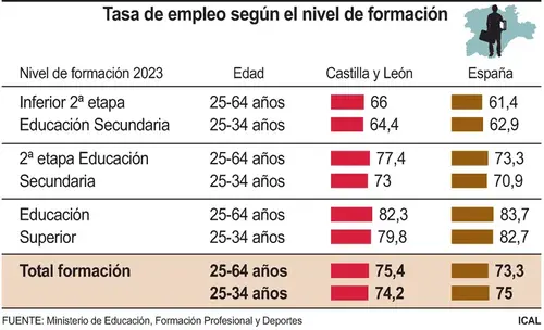 La Comunidad es la única, junto a Aragón, donde la ocupación a largo plazo es mayor entre los titulados de FP de Grado Medio que para los de Grado Superior